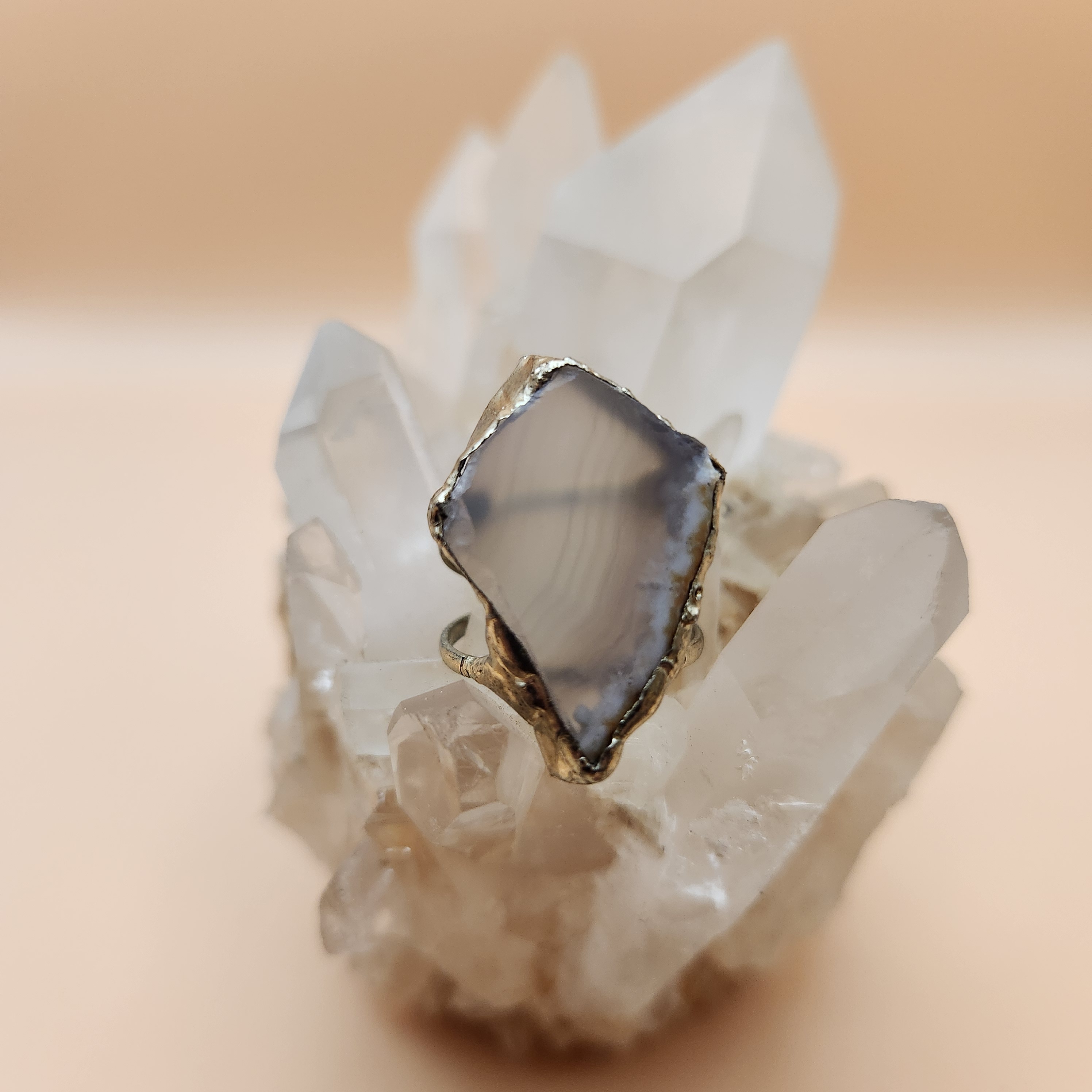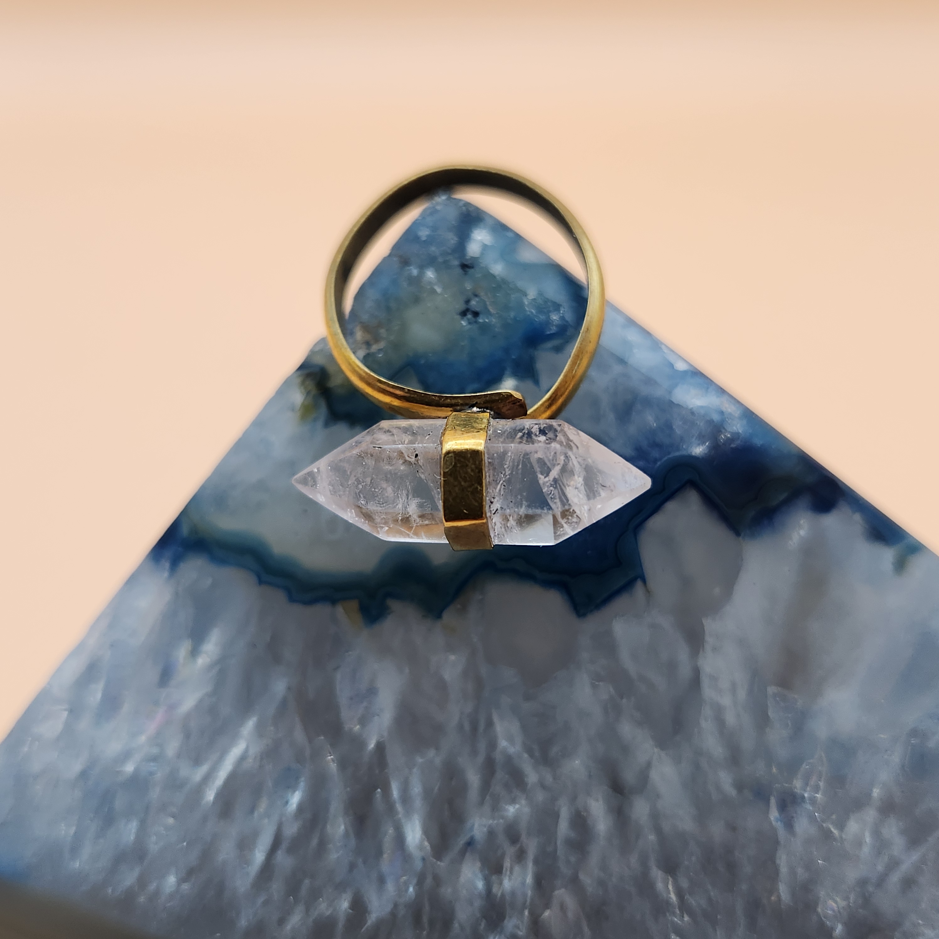 Anillo de Doble Punta Vertical en Cuarzo Pulido