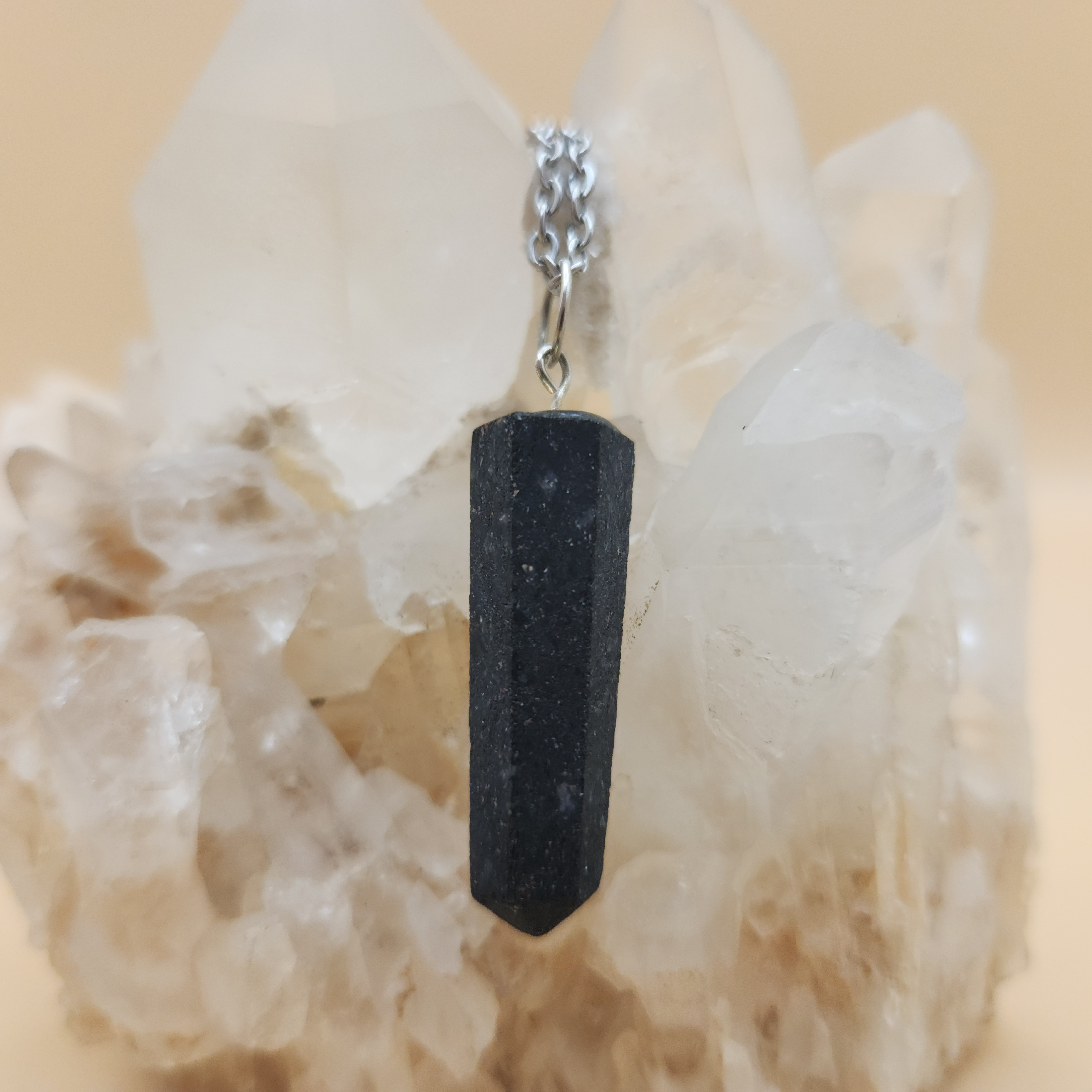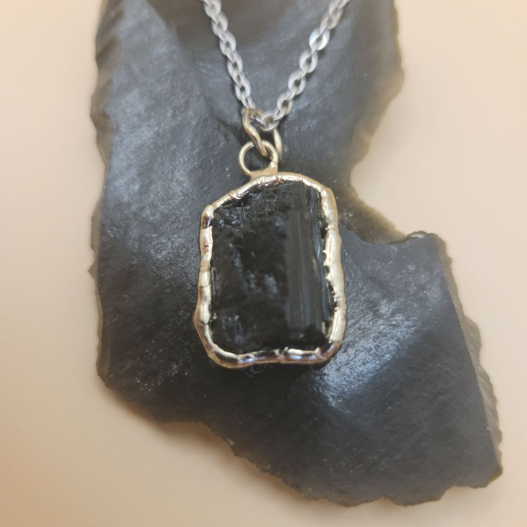 Collar Dije en Punta Rústico Cuarzo Turmalina