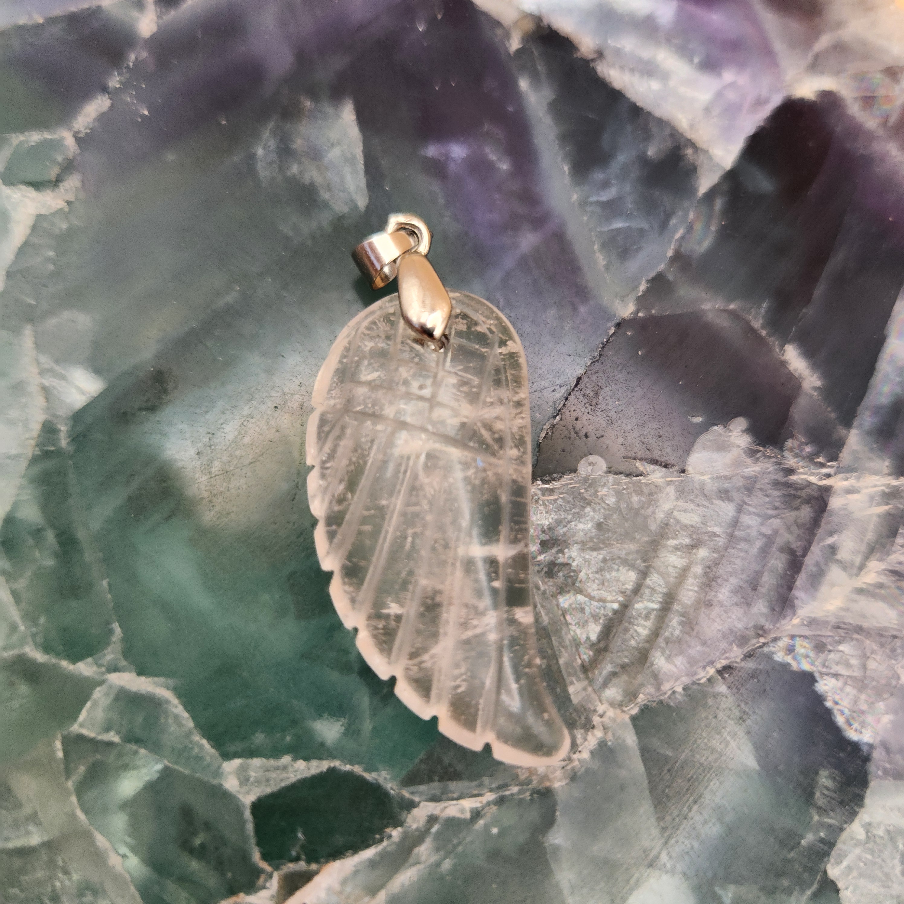 Collar Dije Ala de Ángel Cuarzo Blanco