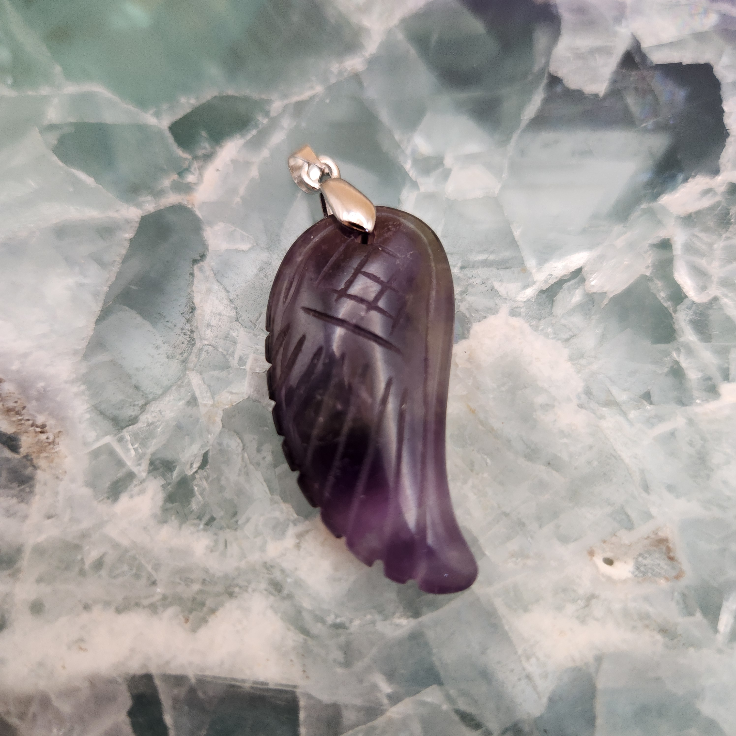 Collar Dije en Punta Pulido Cuarzo Fluorita
