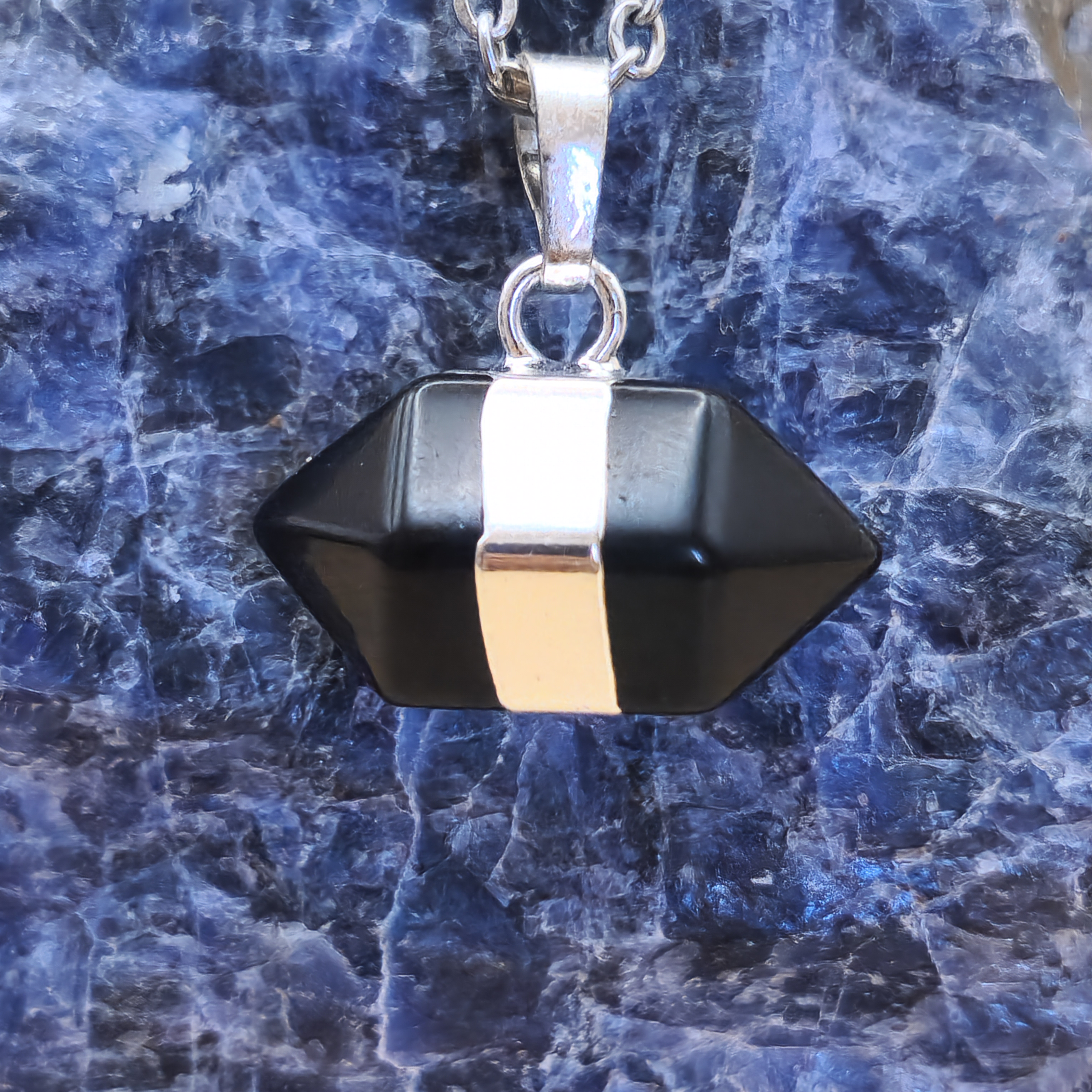 Collar Dije Doble Punta Cuarzo Obsidiana