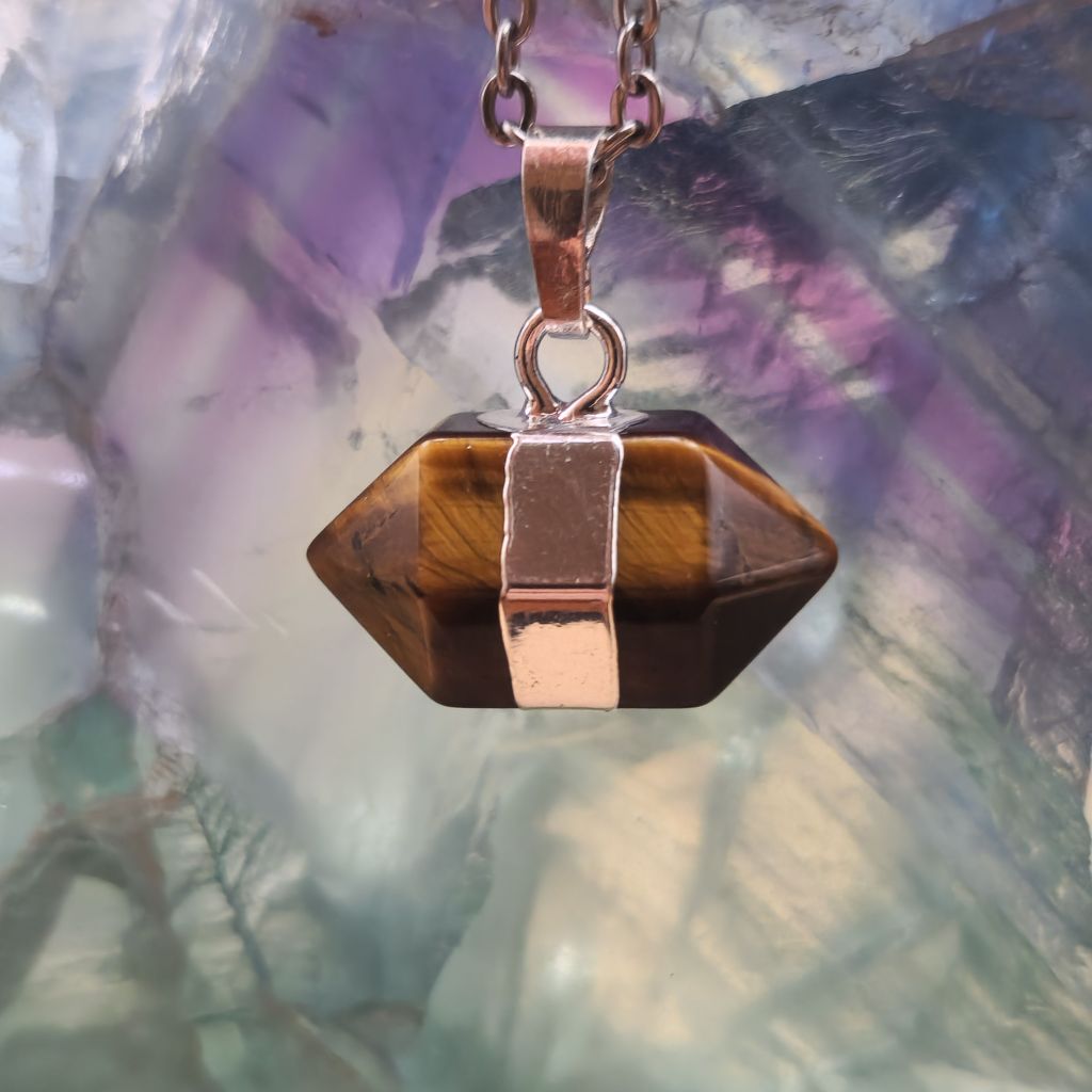 Collar Dije Doble Punta Cuarzo Ojo de Tigre