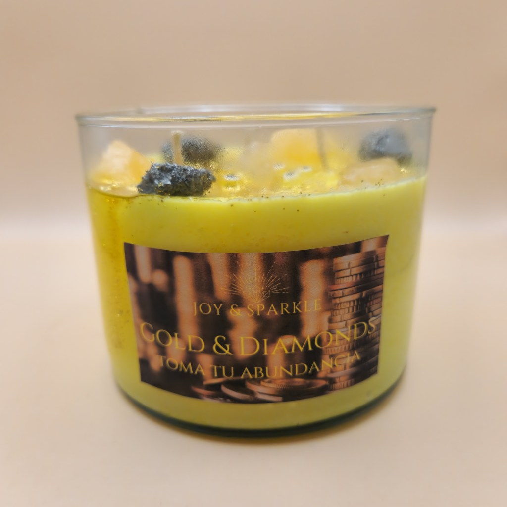 Hecha a mano con Cera 100% de Soya y Cuarzos Naturales.