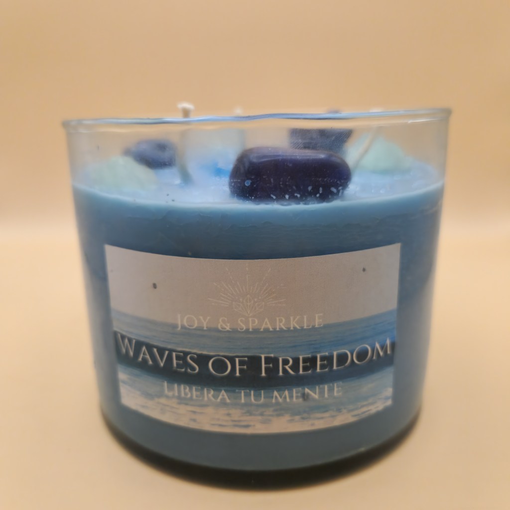 Hecha a mano con Cera 100% de Soya y Cuarzos Naturales.